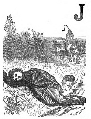 "Be jabbers! it's a thrip'ny," was his mental soliloquy, as he eagerly clutched the coin; and bowing his thanks as politely as he knew how, he dashed up the gangway with the fleetness of the wind, muttering to himself, "Shouldn't wonder if't was a fo'penny, arter all." Standing under a lamp, he took the coin out of his mouth and looked at it. "Oh, glory!" he ejaculated; "if't ain't haaf a bob. Murder and turf! this are a catch!" And he turned two somersaults on the stage by way of expressing his delight, unfortunately, however, planting his foot in his second revolution in the stomach of a young gentleman who was hurrying down to catch the boat.