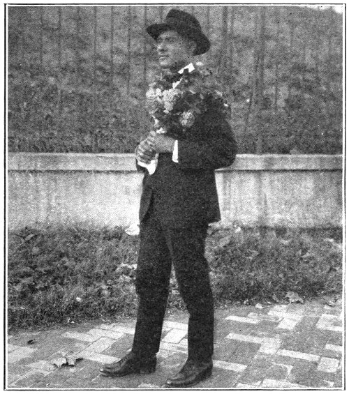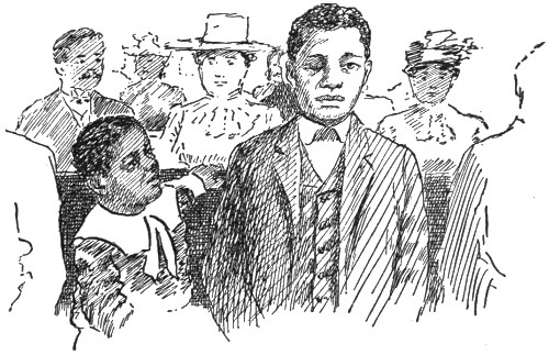 By three-thirty o’clock he had arranged his toilet, and stood before the mirror giving the finishing twirl to his budding moustache. He brushed his clothing the second time, brushed his hat, and, figuratively speaking, arrayed in purple and fine linen, he sallied forth. He boarded an elevated train bound for the downtown district. On his way down he tried to picture to himself the kind of a girl he should meet at the Hopegoods. Would she be tall or short of stature? Blonde or brunette? Above twenty-one years of age or only sweet sixteen? The quick arrival of the train at Park Place put a period to Brickermann’s reverie. He went tripping across a few blocks to the place where all of his hopes had been centered during the past few hours—in fact, days. Arrived there, he stepped into the front office where “Margie” had formerly presided. It was the same snug and cosy room, but he failed to behold there the eagerly expected young lady. Instead he ran amuck a chubby little[265] boy, with a ruddy face and curly hair, and perhaps not more than fourteen or fifteen years old, sitting in “Margie’s” place.