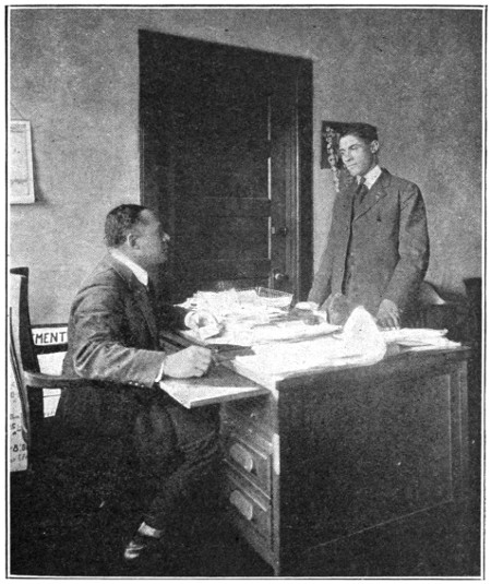 Brickermann’s face turned blood red, and great drops of perspiration stood out upon his forehead. The accents of the little boy startled him, for they were the same that had been wafted to him almost daily along the wire and with which he thought he had been enamored. In the midst of his confusion he managed to say, hoping almost against hope that his identity had not been discovered: