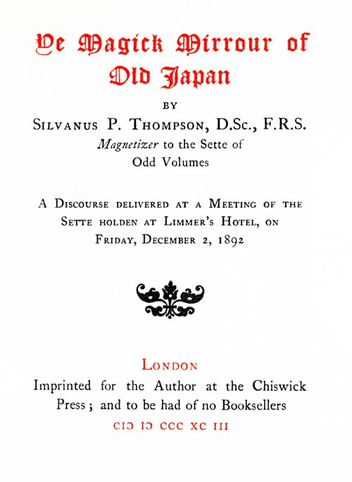 Ayrton, William E. The Mirror of Japan and its Magic Quality. Journal of the Royal Institution, vol. ix., p. 25, 1879, being a Lecture delivered January 24, 1879. [See also Nature, vol. xix., p. 539-542, April 10, 1879, and Chambers’s Journal, vol. lvi., p. 591, 1879.]