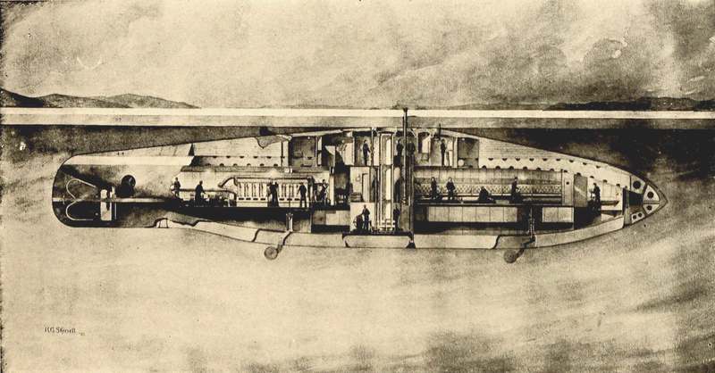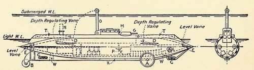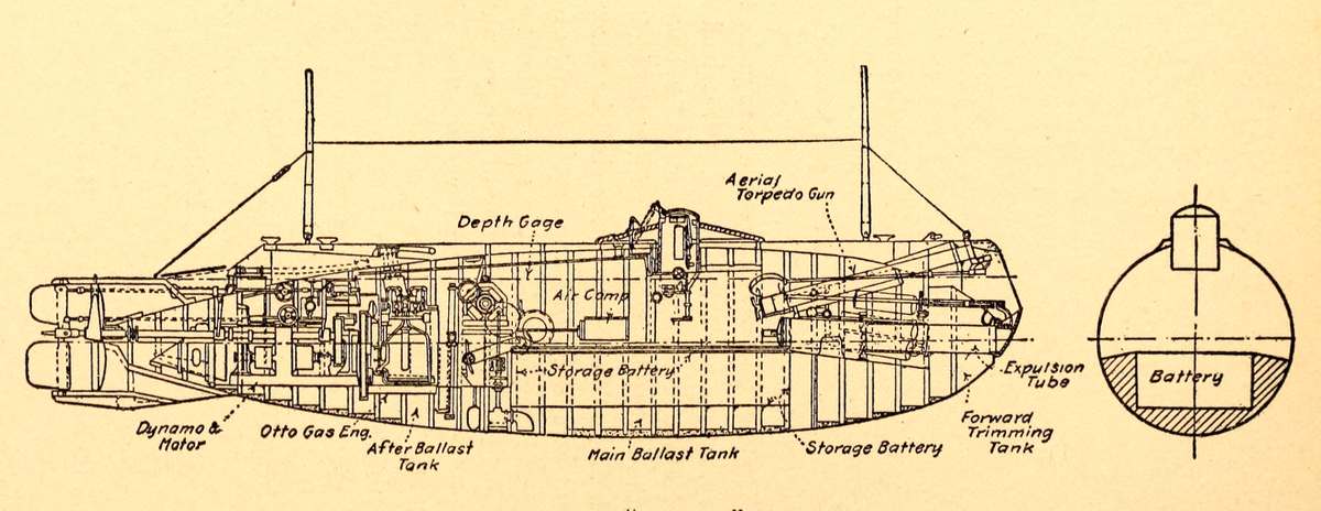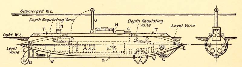Since then there has been considerable dissemination of facts about the submarine; much of this knowledge has found its way into print, some in short historical sketches published by the author and other designers. However, most of the publications on this subject have come from the hands of professional writers and newspaper men, some of whom have not had the engineering knowledge to sift the practical from the impractical, and who have not had any actual first-hand acquaintance with the facts. They have not understood the mechanical details of the submarine and the principles governing its operation well enough to comprehend or to elucidate the various phases of the development of this type of vessel. The result has been that many inaccuracies have been published, both in respect to the history of the development of the submarine and in regard to the practical operation of such vessels.