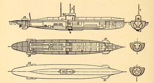 | Official Drawing of the Captured German Mine-planting Submarine, U C-5 | 214 |