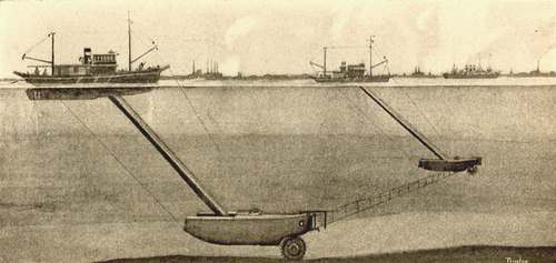 | Sketch Drawing Illustrating a Method of Transferring Cargoes from Sunken Vessels to Submerged Freight Cargo-Carrying Submarines | 278 |
