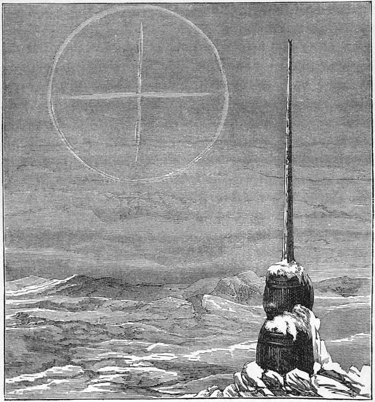 Sun, sets at midnight, 127; final disappearance, 141; last view of, 148, 150; date of final departure, 151, 178; longing for the return of, 207; return of, 219, 220, 221, 222; effect of, on the ice, 207, 313.