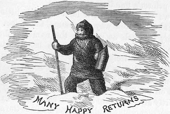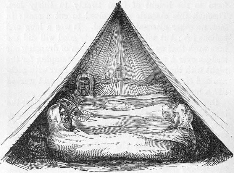Sledging, first lessons in 58; with dogs, 79, 80, 81, 128; first experiences, 129; severe work, 133; details of, 137; shore-going notions of, 138; realities, 139; lecture on, by Captain Nares, 215; grand palæocrystic chorus, 216; preparations for, during the winter, 230; equipments superintended by Sir Leopold M‘Clintock, 231; weights, 233; auxiliaries and depôts, 234; tents, 235; cooking apparatus, 235; contents of knapsack and storebag, 237; scale of provisions, 237; medical stores, 238 (n.); clothing, 239, 240; programme of sledding, operations, 241; the first encampment, 260; intense cold, 259, 262; arrival at autumn depôt, 263; daily routine, 264 to 270; road-making, 273, 275, 276; increasing difficulties, 304; method of advancing, 295, 304, 306, 313; most northern encampment, 307; extreme northern point, 309 to 311; return journey of northern division begun, 312; northern division reaches land, 321; return of northern division, 327; western division, 331, 332; eastern division, 350. (See Autumn, Hummocks, Temperature, Foot-gear, Cook.)