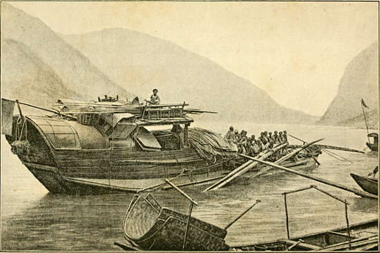 In other words, Ch’ung-k’ing was constituted a Treaty port, but British steamers were denied access to it until Chinese steamers carrying cargo should be pleased to lead the way. No attempt to navigate west of Ichang was ever made, nor, so far as I am aware, was it ever contemplated by the latter, and trade between that port and Ch’ung-k’ing has up to the present been conducted in junks, in accordance with the terms of this Additional Article. But it fell to Japan, after the war of 1894-95, to claim the right of steam navigation to Ch’ung-k’ing, and by Article VI. of the Treaty of Peace, signed at Shimonoseki on April 17, 1895, not only was Ch’ung-k’ing opened to the trade, residence, industries, and manufactures of Japanese subjects, but steam navigation for vessels under the Japanese flag for the conveyance of passengers and cargo was extended on the Upper Yang-tsze from Ichang to Ch’ung-k’ing.