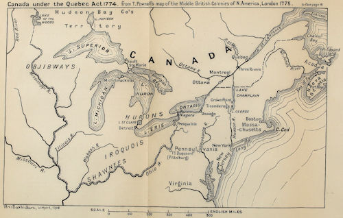 It is impossible to study the correspondence which preceded the Proclamation of 1763, without recognizing that those who framed it were anxious to frame a just and liberal policy, but its terms bear witness to the almost Difficulties of the situation. insuperable difficulties which attend the acquisition of a great borderland of colonization, difficulties which in a few years’ time were largely responsible for the American War of Independence. How to administer a new domain with equity and sound judgement; how to give to new subjects, acquired by conquest, the privileges enjoyed by the old colonies; how to reconcile the claims of the old colonies, whose inland borders had never been demarcated, with the undoubted rights of native races; how to promote trade and settlement without depriving the Indians of their heritage;—such were the problems which the British Government was called upon to face and if possible to solve. The proclamation was in a few years’ time followed up by the Quebec Act of 1774, in connexion with which more will be said as to these thorny questions. In the meantime, even before the proclamation had been issued, the English had on their hands what was perhaps the most dangerous and widespread native rising which ever threatened their race in the New World.