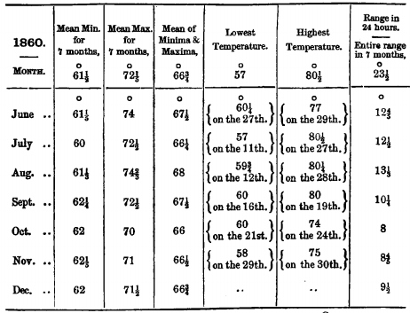 [511] Mr. McIvor informs me that the winter of 1861-62 was the coldest he has experienced since he came to the Neilgherry hills, a period of fourteen years.