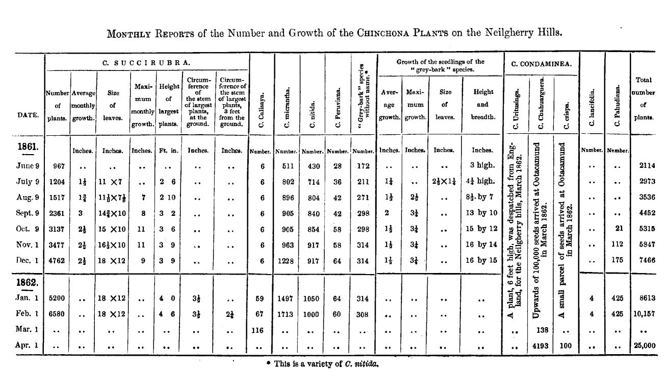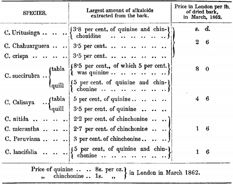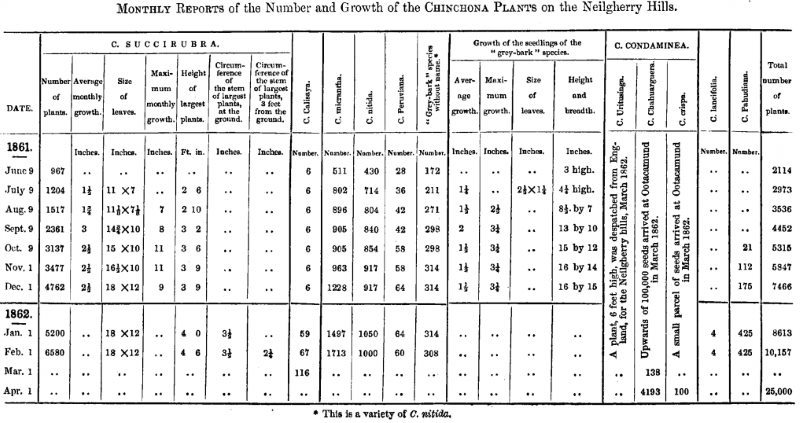 [507] The chinchona-plantations were commenced in Java in December 1854. On the 31st of December, 1860, they had of