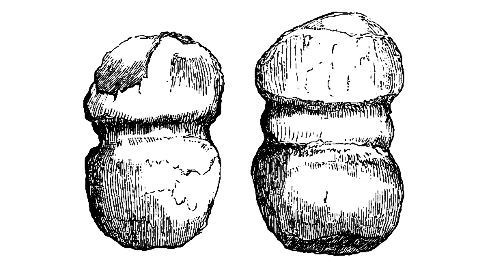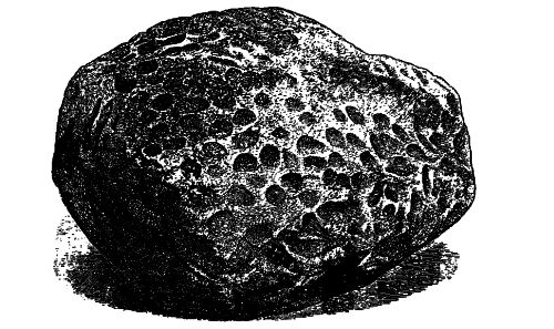 One of these legends is connected with the peculiar features of the scene. Five large granite boulders form prominent objects on the level prairie in the vicinity of the pipe-stone quarries; and two holes under the largest of them are regarded by the Sioux as the abodes of the guardian spirits of the spot. Catlin, who broke off and carried away with him fragments of these sacred boulders, remarks: “As for the poor Indian, his superstitious veneration of them is such, that not a spear of grass is broken or bent by his feet within three or four roods of them, where he stops, and, in humble supplication, by throwing plugs of tobacco to them, solicits permission to dig and carry away the red stone for his pipes.” For here, according to Indian tradition, not only the mysterious birth of the peace-pipe, but the postdiluvian creation of man, took place.