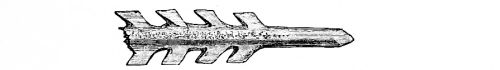 But while the modern Indian thus rivals in the elaborateness of his art the ingenious pipe-sculpture of the mounds, all his superstitious reverence is reserved for the pipe-stem. On it depends the safety of the tribe in peace, and its success in war. It is guarded accordingly with jealous care, and produced at the medicine dance or the war-council with mysterious ceremonies. Even on such great occasions, so long as the medicine pipe-stem is used, it is a matter of indifference whether the bowl attached to it be of the richest carving, or a common trader’s clay-pipe. Many special privileges and honours pertain to its bearer. It is not only disrespectful, but unlucky, to pass between him and the fire. An ornamental tent is provided for his use, and his other official accoutrements are so numerous that frequently he requires to maintain several horses for their transport. A bear-skin robe is employed for wrapping up the consecrated pipe-stem, and thus enveloped, it is usually borne by the favourite wife of the dignitary. But it is never allowed to be uncovered in her presence; and should a woman, even by chance, cast her eyes on it, its virtues can only be restored by a tedious ceremony.