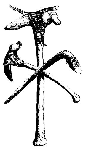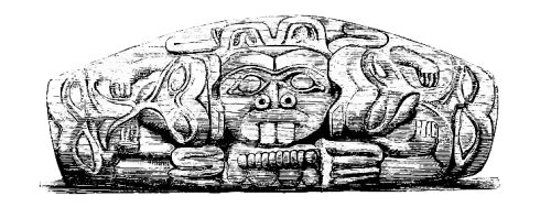 The absence of any but such miniature carvings in the northern mounds may also merit notice when viewed in connection with the ideas of religious worship suggested by the contents of the mound altars. Idolatry, in its most striking, and also in some of its most barbarous forms, prevailed, as we know, among the nations of the Mexican Valley, at the period of the Conquest. The monuments of Yucatan and Central America leave no room to doubt that the worship of such visible impersonations of Divine attributes as their sculptors could devise formed a prominent part of their religious services. Reference has also been made in a previous chapter to rudely modelled and sculptured idols, accompanying other ancient remains, in sepulchral deposits in Tennessee. Others have been found in the huacals of Chiriqui, on the Isthmus of Panama, along with numerous gold relics and many fine specimens of pottery. Those facts render it the more singular that, amid so many traces of imitative sculpture, no relics obviously designed as objects of worship have been dug up in the mounds, or found in such circumstances as to connect them with the religious practices of the Mound-Builders. But the remarkable characteristics of the elaborately sculptured pipes, and their obvious connection with services accompanying some of the rites of sacrifice or cremation, may indicate their having played an important part in the religious solemnities of the ancient race; and on this the arts and customs of modern tribes help to throw some curious light.