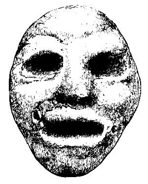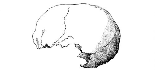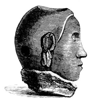 The mouth, though protuberant, is small; the lips are thin; instead of the characteristic ponderous maxillary region of the true Indian, the chin and the upper lip are both short; and the lower jaw, without any marked width between the condyles, is small, and tapers gradually towards the chin. Perhaps it is owing to this smallness of the lower portion of the head and face, that it was supposed to represent a female. But such an idea is not suggested by any marked characteristic either in the features or head-dress. The cheek-bones, though high, are by no means so prominent as in the original engraving. Indeed, the projection is almost entirely in front, giving a tumid cheek immediately under the eye. I doubt if any competent observer, ignorant of the history of this relic, would assign it to an Indian type.