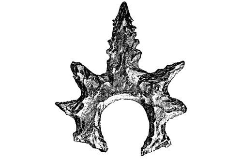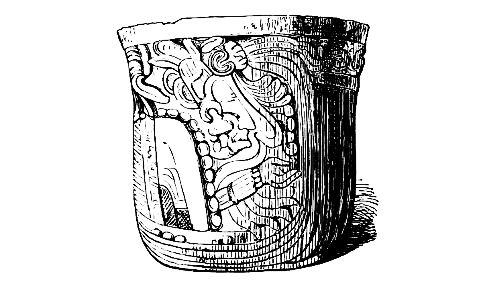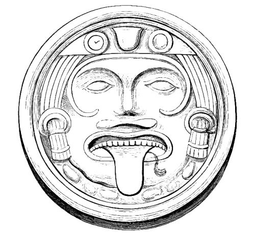 In studying the elaborate sculptures of Central American architecture, one of the first of its peculiar characteristics to strike the eye is the predominance of representations of natural objects, alike in its decorative details and in the symbolism of its hieroglyphic tablets. The human form, the head, the heart, the skull, the hand and foot, along with familiar objects of animate and inanimate nature, supplied the readiest architectural devices, and the most suggestive signs for attributes and ideas. In the imitation involved in such a style of art, resemblances may be traced to the productions of many partially civilised nations both of ancient and modern times. But in reviewing the primitive art of the New World, whether pertaining to extinct nations, like the Mound-Builders of Ohio and the architects of Yucatan, or to Indian tribes still occupying their old hunting grounds, the critical observer can scarcely overlook many peculiar manifestations of imitative skill. Though by no means to be regarded as an exclusive distinction of the American races, this is a characteristic in which they present a striking contrast to the primitive races of Europe. Many of the implements and personal ornaments of the ante-Christian era of European art, designated the “Bronze Period,” are exceedingly graceful in form, and some of them highly ornamented, but there is rarely a trace of imitative design. So also, though the peculiar form of one primitive class of gold ornaments, found in the British Isles, has suggested a name derived from the calyx of a flower, which the cups of its rings seem in some degree to resemble, it is a mere fanciful analogy; for no example bears the slightest trace of ornament calculated to suggest that such similarity was present to the mind of the ancient goldsmith. Where incised or graven ornaments are wrought upon the flower-like forms, they are the same chevron, or herring-bone and saltire patterns, which occur on the rudest clay pottery, alike of northern Europe and of America: though executed on the finer gold work with considerable delicacy and taste.