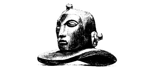 The discovery of a sculptured head betraying traces of Indian features, among many of a different type, corresponds to another interesting fact, that animals foreign to the region, and even to the North American continent, are figured in the mound-sculptures. It presents a parallel to well-known examples of Etruscan vases moulded in the form of negroes’ heads; and of Greek pottery painted with the same characteristic features and woolly hair. Specimens of both are preserved among the collections of the British Museum, and furnish interesting evidence, alike of the permanency of the negro type, and of the familiarity both of Greek and Etruscan artists with the African features, long prior to the Christian era. Similar examples of foreign portraiture have attracted attention on the older monuments of Egypt, and among the basso-relievos of the tomb of Darius Hystaspes at Persepolis: supplying interesting illustrations of imitative art employed in the perpetuation of ethnic peculiarities of physiognomy. Supposing, therefore, the Mound-Builders to have been a settled population, as distinct from a contemporaneous Indian race as the classic nations of antiquity differed from the barbarian tribes beyond the Alps and the Rhine: it is no more surprising to trace the genuine Indian features in mound-sculptures, than to discover those of the Dacian or the Gaul on the column of Trajan. It proves that the Mound-Builders were familiar with the American Indian type, but nothing more. The evidence indeed tends very distinctly to suggest that they were not of the same type; since the majority of sculptured human heads hitherto recovered from their ancient depositories do not reproduce the Indian features.