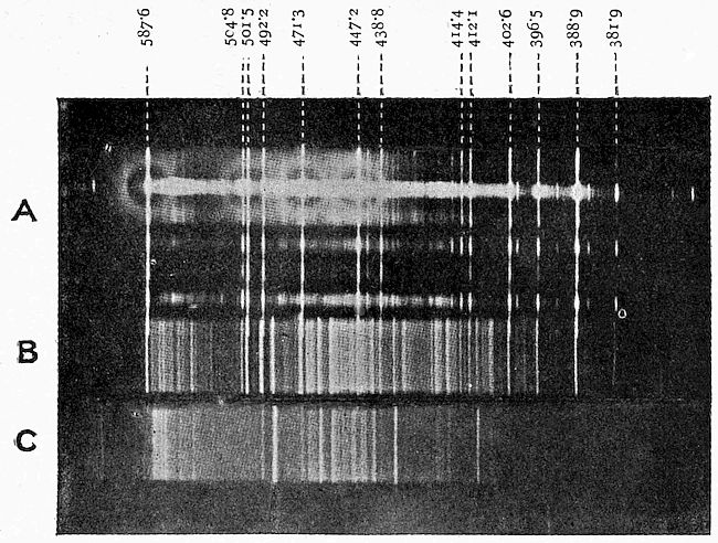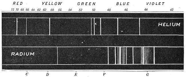 | Fig. 10. | — Diagrams of the visible lines of the Spectrum given by incandescent Helium and Radium | 76 |