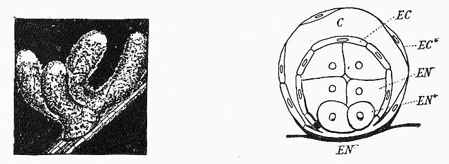 | Fig. 32. | — The nodules on the roots of bean-plants and the nitrogen-fixing microbe, Bacillus radicola, which produces them | 114 |