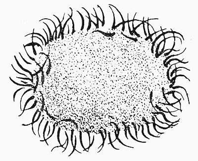 It appears that the parasite is transmitted from one individual to another in coition. The specimens studied by Giard and Billet were obtained at Wimereux near Boulogne. I found the disease very abundant at Ouistreham near Caen in the summer of 1900. I have not observed it nor heard of its occurrence on the English coast. Sea-water commonly contains a free-living phosphorescent bacterium which can be cultivated in flasks of liquid food so as to give rich growths which glow like a lamp when the flask is agitated so as to expose the contents to oxidation. This bacterium is not, however, the cause of the ‘phosphorescence’ of the sea often seen on our coasts. That is due in most cases to a much larger organism, as big as a small pin’s head, and known as Noctiluca miliaris.