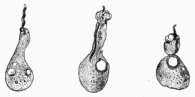 E, F, pear-shaped forms resulting from the contraction of forms like A; G, a cluster of very minute individuals.
