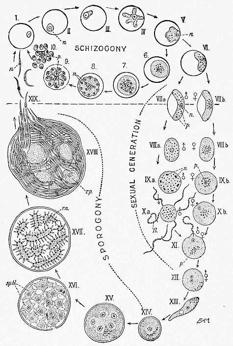 | Fig. 44. | — The life-history of the Malaria Parasite | 142 |