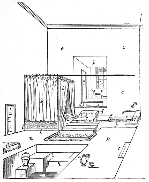 | Mr. Urquhart's bath; the Laconicum; the spiracle of sweet perfumes; the Lavatrina; the cold pool; the hot and cold douche; breakfast; kuscoussoo; the chemistry of the preparation of food; its value to man | pp. 79-87 |