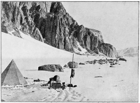| Lower Glacier Depot. The Stores Were Buried in the Snow Near the Rock in the Foreground | 133 |
