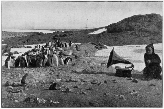 The Adelie is always comical. He pops out of the water with startling suddenness, like a jack-in-the-box, alights on his feet, shakes his tail, and toddles off about his business. He always knows where he wants to go and what he wants to do, and it is difficult to turn him aside from his purpose.