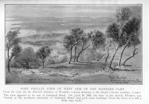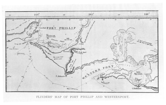 Port Phillip. Flinders in. Discovery of. Attempted settlement of.