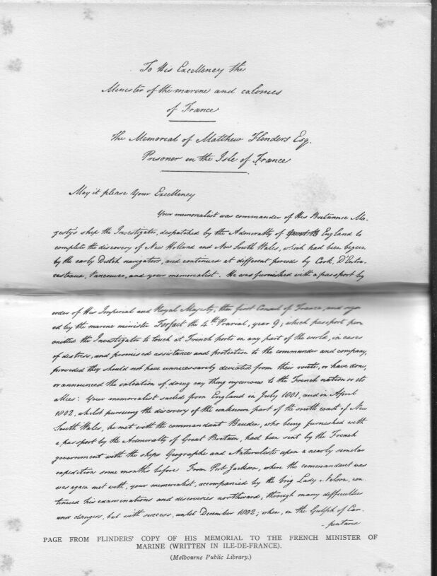 The Flinders papers, of which free use has been made, were presented to the Melbourne Public Library by Professor W.M. Flinders Petrie. They are described in the bibliography. The transcripts of family and personal documents were especially valuable. Although they were not supplied for this book, Professor Flinders Petrie gave them in order that they might be of use to some biographer of his grandfather, and the author begs to thank him, and also Mr. E La Touche Armstrong, the chief librarian, in whose custody they are, and who has given frequent access to them.