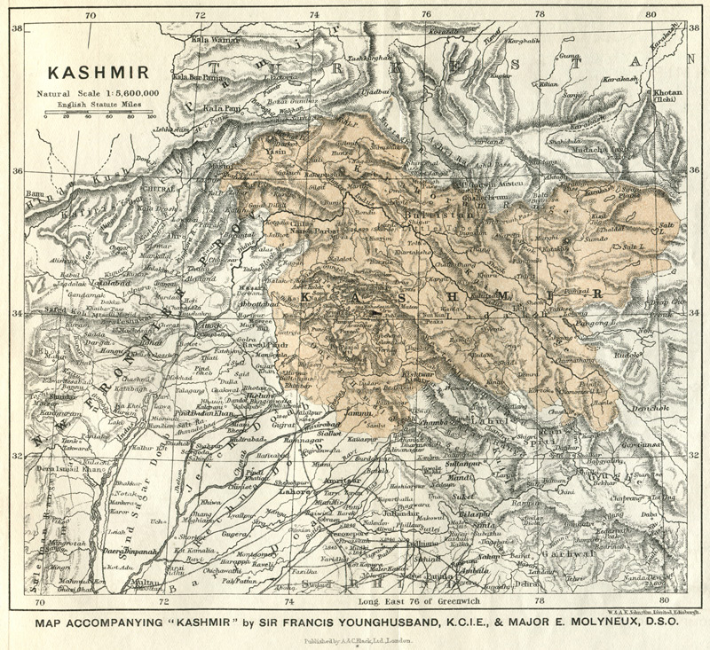 When Major Molyneux asked me to combine with him in the production of a book on Kashmir I could not resist the temptation to describe what he had so faithfully depicted, though my official duties naturally leave me insufficient time to do real justice to the theme. I have not been able to write with the completeness that I should have wished; and I am aware of many sins of omission. I can only hope that when the description fails the reader will be fortunate to have his attention irresistibly diverted to one or other of my collaborator's beautiful pictures.