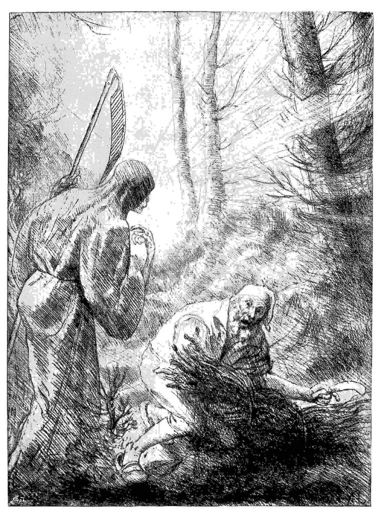 SO much said, and yet nothing said of men a dozen times more popular than the generally single-minded etchers are wont to be, of whom in chief I have spoken. But to the large public, Macbeth and Herkomer and Axel Haig appeal without need of introduction—Macbeth and Haig appeal especially by treatment, and Herkomer especially by subject. Herkome theme is generally a dramatic one, and into it he introduces such obvious interest of line and of expression as may be found in a woman with the picturesqueness of age, a man comely and vigorous, a girl with Anne Pag “eyes of youth.” Mr. Herkomer has a story to tell us—sometimes the story of a life as it is told in portraiture, and he tells it with no absence of ability. But attractive as he well may be, clever as he most surely is, he rarely reaches exquisiteness; nor is there reason to think that the plate, the needle, and the aquafortis constitute in any special way his proper{153}