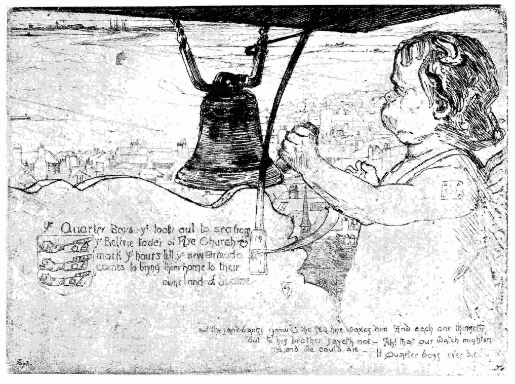 MR. RAVEN-HILL—the artist who adds piquancy to comic newspapers—is little known as an etcher; but his work upon the copper is delicate, rightly precise and rightly free—it is in the best etche manner—and if it is as yet so little recognized, that is only because it is so scanty and has been so seldom exhibited. From several points of view the small array of Mr. Raven-Hil etched work is interesting and valuable; it is, almost invariably, observant record and admirable craftsmanship; and not the least legitimate of its sources of interest lies in the fact that in it the presence of the refined artist, as distinct from that of the smart comic illustrator, is markedly asserted. Hereafter it may be that Mr. Raven-Hill will choose to etch, and to etch ably, scenes from the life of which, in other mediums, he has been, deservedly, a popular exponent. Tom, Dick, and Harry—Harriet,{149}