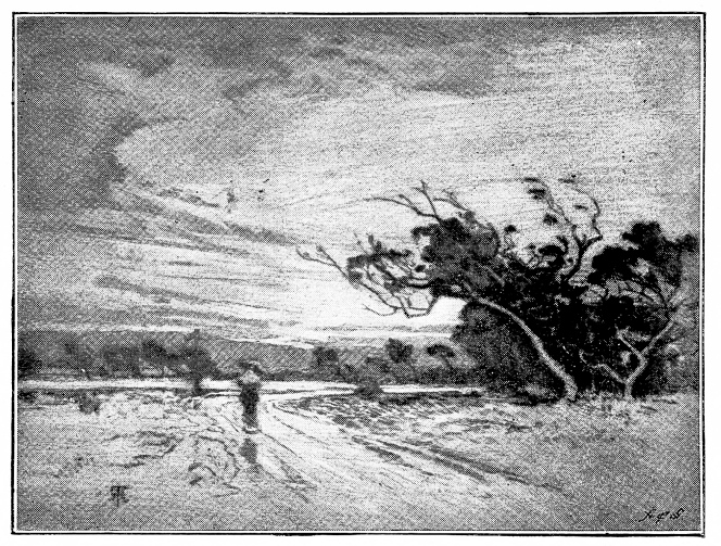 chiefly—Monsieur Paul Helleu—let there be brief recognition of the true artis instinct which caused Mr. Alfred East, our admirable landscape painter, to record, with the solidity and massiveness so possible to dry-point, his impression of “A Hurrying Wind.{172}”