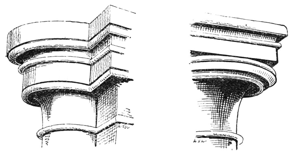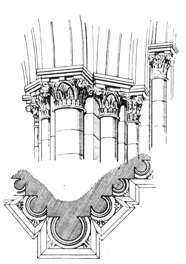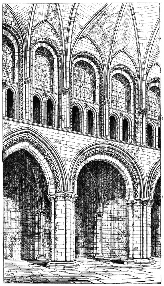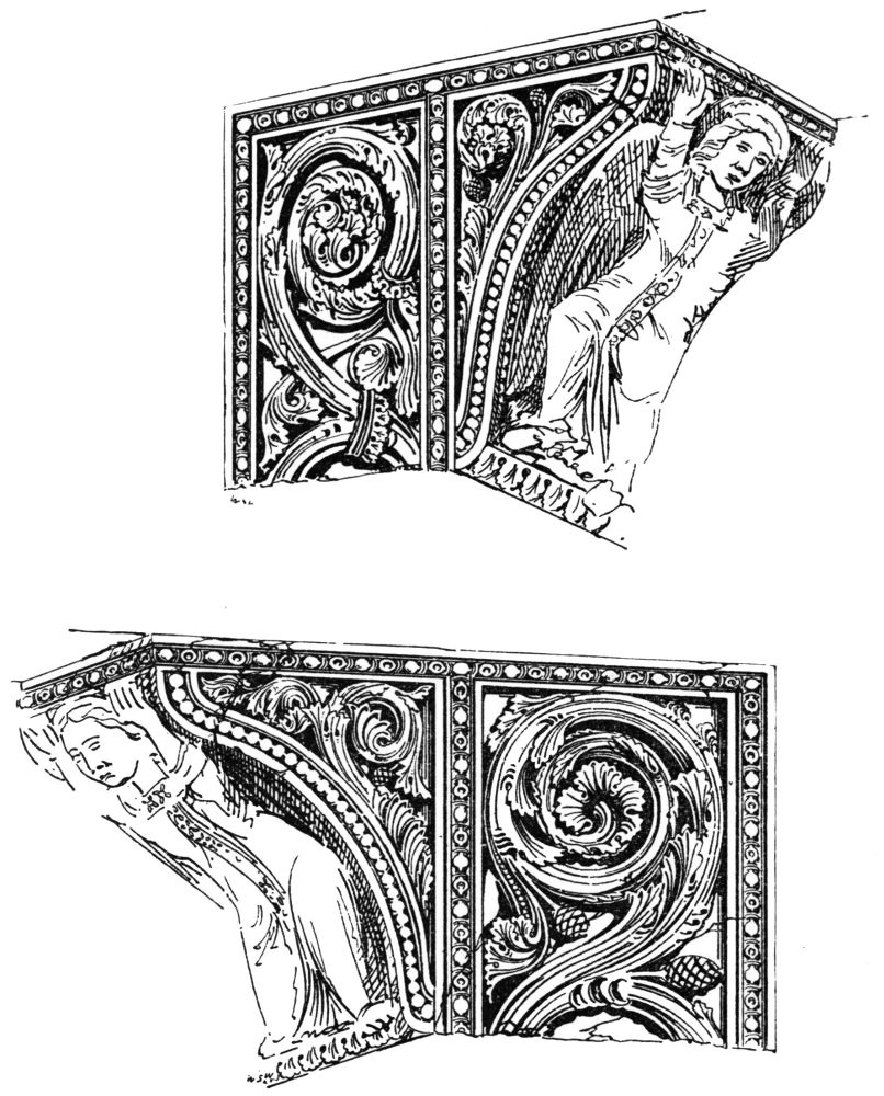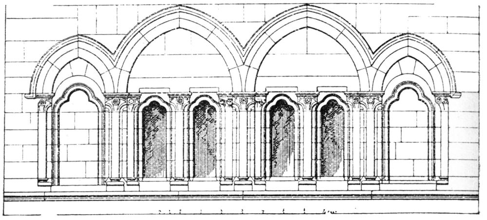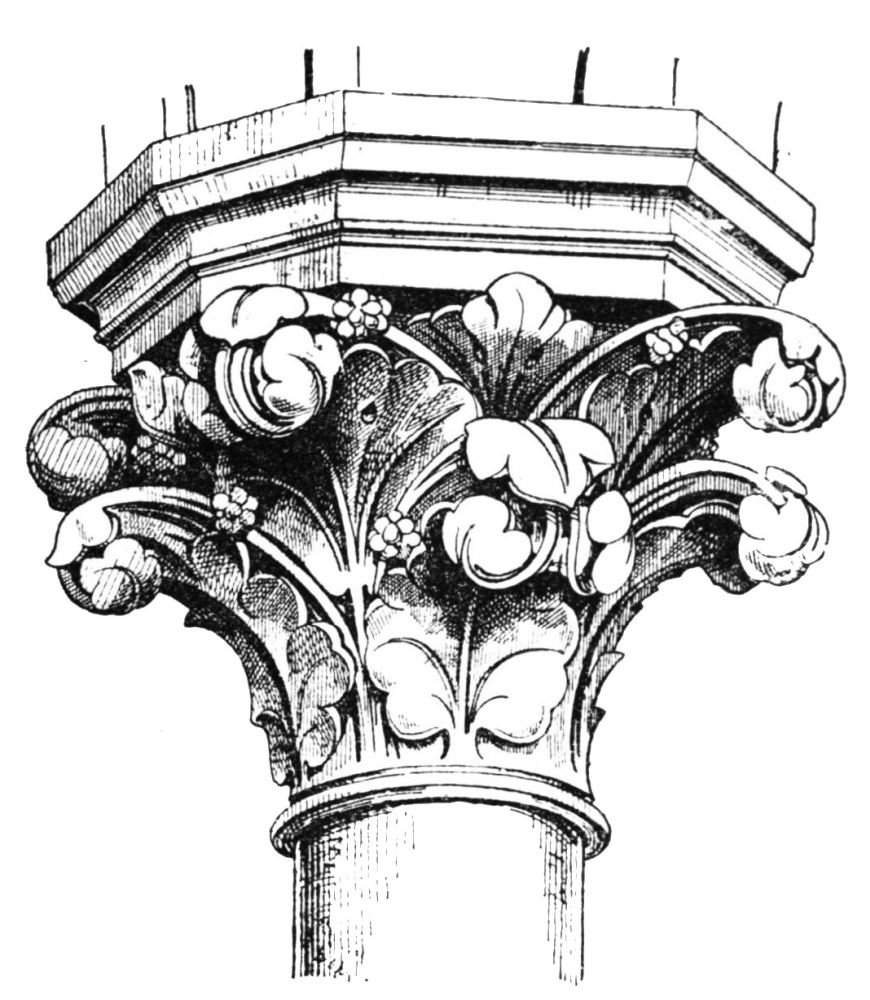 | Gradual refinement of Romanesque—French architects the earliest to systematise the pointed arch—The English before the Germans—The Italians from the Germans—Fully acknowledged in France 1140—Suger’s work at St. Denis—Carving in French churches—Corinthianesque outline of capitals—Distinctly Byzantine capitals—A route by which Byzantine foliage may have reached France—The importation indisputable—Its effects seen in Early English capitals—West front of Chartres—Fluting on basement of doorways—Cathedral of Noyon—St. Germain des Pres, Paris—Cathedral of Sens, prototype of the Choir and Trinity Chapel at Canterbury—Nôtre Dame, Paris—A new kind of foliage—The capital “à crochet”—English transition—Incipient specimens—Refined Norman—Pointed style, with reminiscences of Romanesque—William of Sens—William the Englishman—Influence of French work—Oakham Castle—Glastonbury Abbey—Cathedral of St. David’s—Temple Church, London—Chichester Cathedral—Tynemouth Abbey—Hexham Abbey—Unfoliated capitals—Round moulded capitals—Characteristics of English and French transition—The German transition—Practical lessons from studying these changes—Principles to which the transition was pioneer | Page 69 |