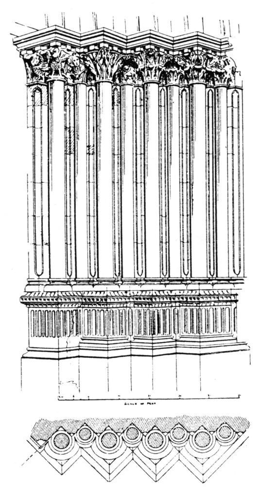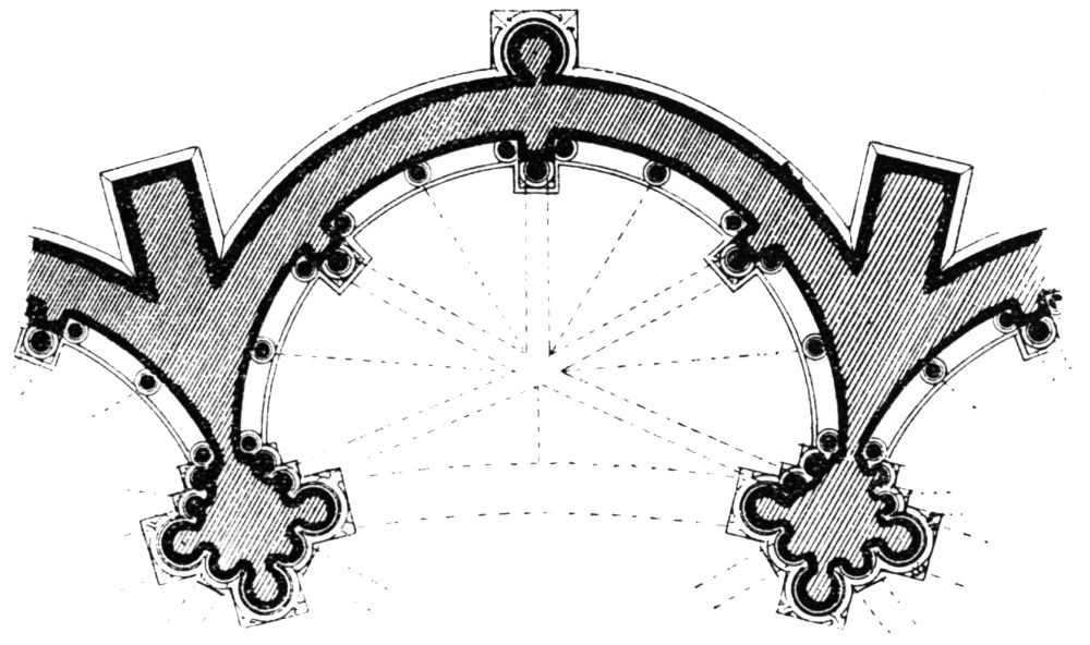 | Contradictory opinions as to the character and origin of Gothic Architecture—True causes of its origin—The arch—The Romans eminently practical—Two defects in their architecture—Practical improvements—Use of small materials—Arches in rims—Sub-ordinating rims—Imposts—Pilaster capitals—Decorative columns—Romanesque arch decorations—Labels—Clustered columns—Weight of arches on columns—Doorways—Windows—Rejection of ancient rules of proportion—Efforts to improve construction and decoration in the twelfth century—Absolute demand for an arch of less pressure and for an abutment of greater resistance—Ribbed as distinguished from arris vaulting—Reasons for adopting the former—Pointed arch as effecting proportion | Page 215 |
