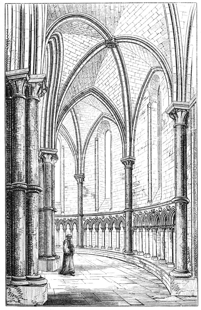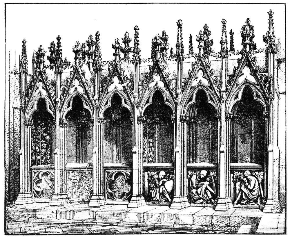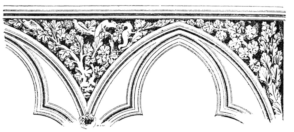 | St. Saviour’s, Southwark—Choir of Temple Church, London—Chapel at Lambeth—Westminster Abbey—Its Italian mosaic work, monuments, and ancient reredos—Chapel of St. Etheldreda, Holborn—St. Alban’s Abbey—Priory Church, Dunstable—Stone Church near Gravesend—Waltham Cross—Jesus Chapel, Cambridge—Ely and Peterborough Cathedrals—Warmington Church—West Walton Abbey—Crowland Abbey—St. Mary’s and All Saints, Stamford—Ketton, Grantham, and Frampton Churches—Lincoln Cathedral—Southwell Minster—Newstead Abbey—York Cathedral—St. Mary’s Abbey, and St. Leonard’s Hospital, York—Skelton Church—Beverley and Ripon Minsters—Fountains, Rivaulx, Whitby, Kirkham, and Guisborough Abbeys—Chapel of the Nine Altars, Durham—Hexham and Dryburgh Abbeys—Chapel of Holyrood—Elgin and Glasgow Cathedrals—Furness Abbey—Southern examples—Most great churches in France vaulted, not so in England—Universal excellence of workmanship from 1175 to 1400—Domestic architecture of France, Germany, Italy, and England—Influence of thirteenth century work on our artistic practice | Page 170 |