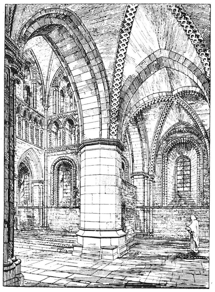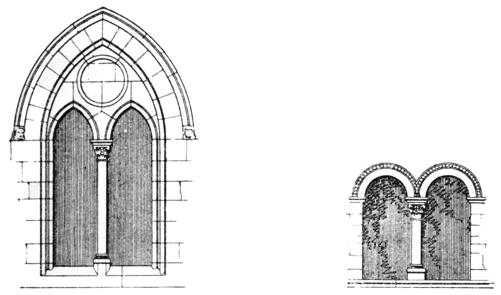 So it is with those who have harboured an early affection for the architecture of their native land. Strongly as I appreciate the intrinsic beauty of the monuments of classic antiquity, and the merits of very many works of the Revival, I should doubt whether it were possible for any unsophisticated youth, before studying their architecture as a science, to entertain towards its productions in this country any feelings bordering upon real affection. He may see in them much to admire—much to lead him to study the art which has produced them; and this study will, no doubt, often kindle those warmer feelings which ripen into love. But this is a very different feeling from that deep and filial affection which many a youth, untaught in art, but gifted by nature with a perception of its beauties, has entertained from his tenderest years towards the old churches of his neighbourhood,{3} and which has impelled him to walk from village to village, not only under the balmy influences of summer, but along muddy roads or snowy paths, and, with glowing heart but shivering hand, to sketch the humble porch, the unaspiring steeple, and the mutilated though venerable monument, with feelings of indescribable delight.