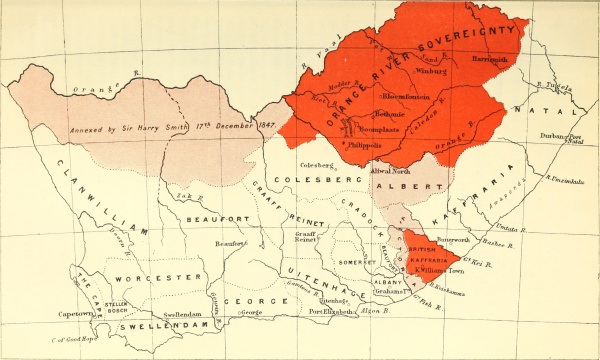 But I had not merely to illustrate the period of Sir Harry’s life covered by his Autobiography; I [xi]had a further task before me, viz. to construct a narrative of the rest of his life (1846-1860), including his Governorship of the Cape (1847-1852). For the manner in which I have done this, I must crave indulgence. At the best it would have been no easy matter to continue in the third person a story begun by the main actor in the first, and in this case the letters and personal memoranda, which were tolerably abundant for Sir Harry’s earlier years, suddenly became very scanty when they were most required. Accordingly, for much of Sir Harry’s life I had no more sources to draw on than are accessible to anybody—histories, blue-books, and newspapers. I can only say that in this situation I have done the best I could. My chief difficulty was, of course, in dealing with the time of Sir Harry’s command at the Cape. It would have been inconsistent with the scope of the whole book to have attempted a systematic history of the colony or of the operations of the Kafir War. At the same time I could not enable my readers to form an estimate of Sir Harry’s conduct at this time without giving them some indication of the circumstances which surrounded him. If I am found by some critics to have subordinated biography too much to history, I can only hope that other critics will console me by finding that I have subordinated history too much to biography.