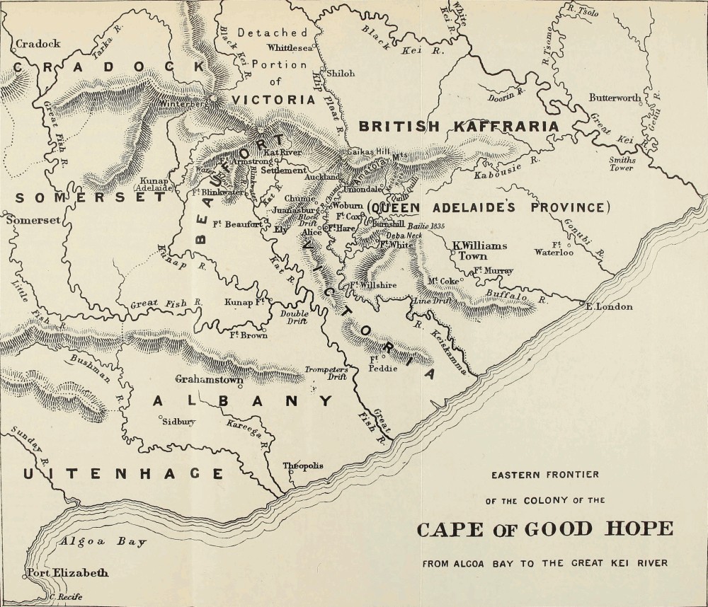 - during Kafir war of 1835, 376, 377, 379, 387, 388, 423, 430, 720-723, 725, 737, 758, 759