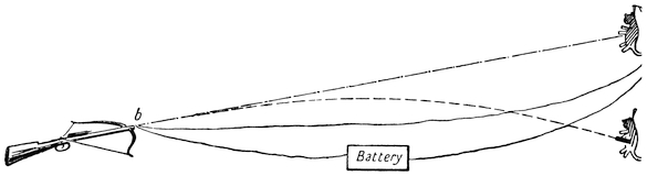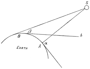 The earth was considered as a huge island in the midst of a circular sea. Gradually, however, astronomical ideas became subjected to science. One of the first truths that dawned on astronomers was the fact that the earth was a sphere. For they noticed that as people went further and further to the north, the elevation of the sun at midday above the horizon became smaller and smaller. This can easily be seen from the diagram. When an observer is at A the sun appears at an altitude above the horizon equal to the angle α, but as he goes along the curved surface of the earth to a point B nearer to the north pole, the sun appears to be lower and only to have an altitude β. From this it was easy for men so skilled in geometry as the Greeks to calculate how big the earth was. They did so, and it appeared to have the enormous22 diameter of 8,000 miles. They only knew quite a small portion of it. They thought that the rest was ocean. But they had, of course, a clear idea of the “antipodes” or up-side-down side of it, and they believed that if men were on the other side of it that their feet must all point towards its centre. From this they got the idea of the centre of the earth as a point of attraction for all things that had an earth-seeking or earthy nature. Fire appeared always to desire to go upwards, so they thought that fire had an earth-repellent, heaven-seeking character. Water they thought partly earth-seeking, partly heaven-seeking, for it appeared in the ocean or floated as clouds. Air they thought to be indifferent. And out of the four elements fire, water, earth, and air they believed the world was made. The earth they thought must be at rest; for if it was in motion things would fly off from it. They saw that either the sun must be moving round the earth, or else the earth must be turning on its axis. They chose the former hypothesis, because they argued that if the earth were twisting round once in twenty-four hours then such a country as Greece must be flying round like a spot on the surface of a top, at the rate of about 18,000 miles in twenty-four hours, that is, at the rate of about 180 yards in a second, or faster than an arrow from a bow. But if that was the case then a bird that flew up from the earth would be23 left far behind. If a ball were thrown up it would fall hundreds of yards behind the person who threw it. They could not conceive how it was possible for a ball thrown up by someone standing on a moving object not to fall behind the thrower.