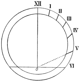 Small portable sun-dials were once much used before the introduction of watches, and were provided with compasses by which they could be turned round, so that the “style” pointed to the north.