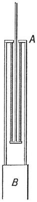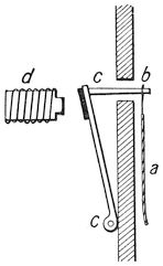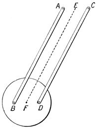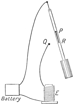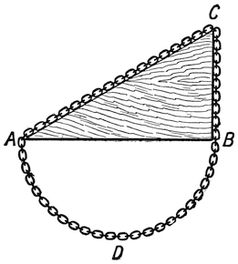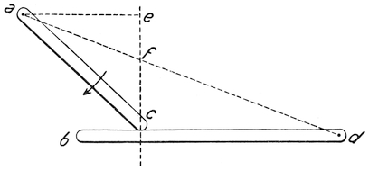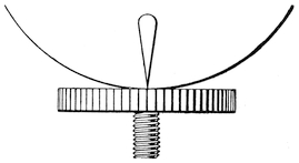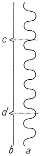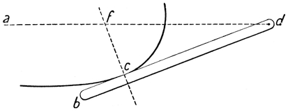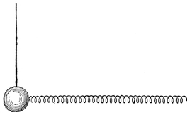 The modern plan of observing the speed of vessels is different. Now we use a patent log, consisting of a miniature screw propeller tied to a string and dragged through the water after the vessel. As it is pulled through the water it revolves, and the number of revolutions it makes shows how much water it has passed through, and thus what distance it has gone. The number of revolutions is measured43 by a counting mechanism, and can be read off when the log is pulled in. Or sometimes the screw is attached to a stiff wire, and the counting mechanism is kept on board the ship.