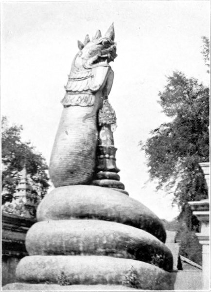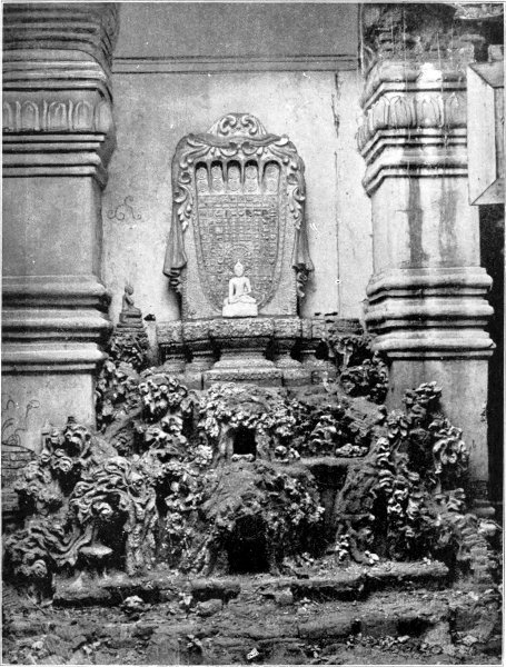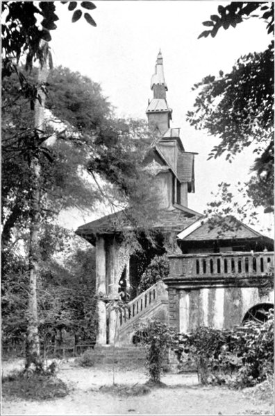 Of Rangoon in those early days, separate mention may be made. One glory it had which still abides. The Shwe Dagôn Pagoda, most sacred and most illustrious of pure Buddhist shrines, dominating the landscape, rose golden to the sky. From far the traveller approaching Rangoon from the sea caught sight of that amazing shaft of gold, and instinctively did reverence. In the bright winter sunshine, in the blue haze of summer heat, in the veiled mysteries of tropic moonlight, it towered awe-inspiring, stupendous, divine. On feast days and sabbaths the platform was thronged with worshippers, surely the brightest, best-humoured, most laughter-loving of all pious crowds. Even now one can imagine no scene more gracious, more mystically serene and lovely, than the pagoda in the light of the full moon, when all that is tawdry and unseemly is charmed away. But thirty years ago, before the platform was covered with modern shrines not all in harmony with æsthetic canons, it was still more gravely and austerely beautiful.