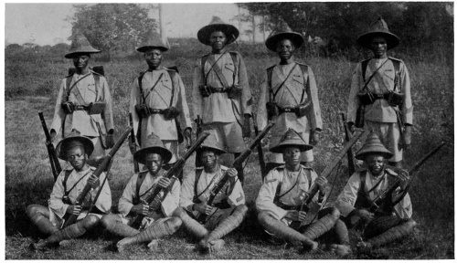 Officers and men, who at that time had been fighting almost continuously since the 4th August, 1914, save for the brief rest which they had recently enjoyed at Kumasi, presented on this occasion a very smart and workmanlike appearance. They were thoroughly well-equipped and thoroughly seasoned troops, with achievements already to their credit of a kind that had filled the Colony to which they belonged with pride.
