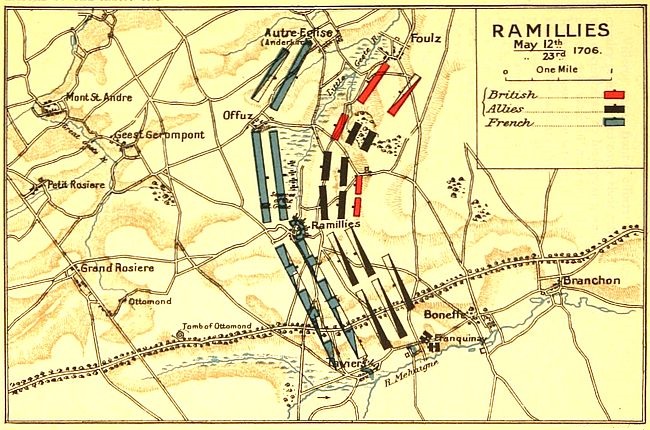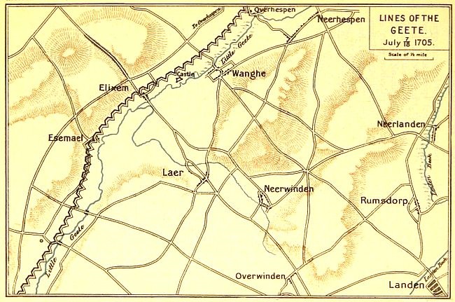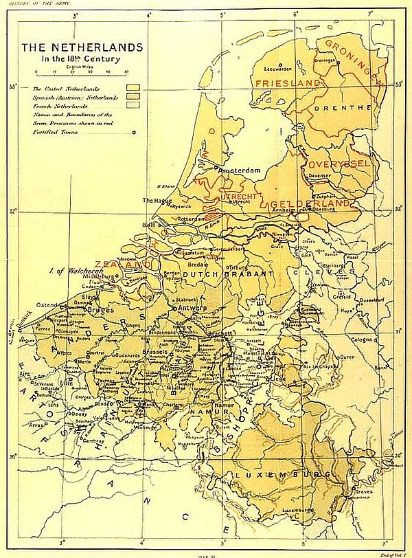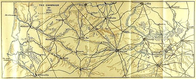 Maps and plans have been a matter of extreme difficulty, owing to the inaccuracy of the old surveys and the disappearance of such fugitive features as marsh and forest. I have followed contemporary plans wherever I could in fixing the dispositions of troops, but in many cases I should have preferred to have presented the reader with a map of the ground only, and left him to fill in the troops for himself from the description in the text. Blocks of red and blue are pleasing indeed to the eye, but it is always a question whether their facility for misleading does not exceed their utility for guidance. Actual visits to many of the battlefields of the Low Countries, with the maps of so recent a writer as Coxe in my hand, did not encourage me in my belief in the system, although, in deference to the vast majority of my advisers I have pursued it.