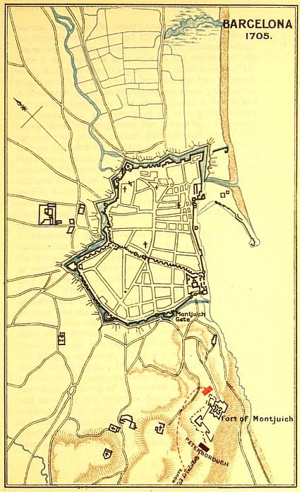 [425] Four regiments destined for the Peninsula in 1711 were kept waiting three months for their ships at Cork. In that time they lost 500 men by desertion, probably not much less than a fourth of their numbers.