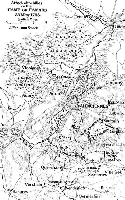 [238] Hamilton (History of the Grenadier Guards, ii. 304) says, I know not on what authority, that the pretext for this order was that Clerfaye required assistance. It is certain that the Austrian Headquarters had heard nothing and knew nothing of Clerfaye’s situation at this time, so that, if General Hamilton’s story be more than mere gossip, the order was probably urged by Waldeck or some other of Mack’s enemies, with the object of bringing his elaborate combinations into contempt. The fact that the British would be the chief sufferers in case of mishap, would rather have encouraged this faction in the Austrian Staff to the measure.