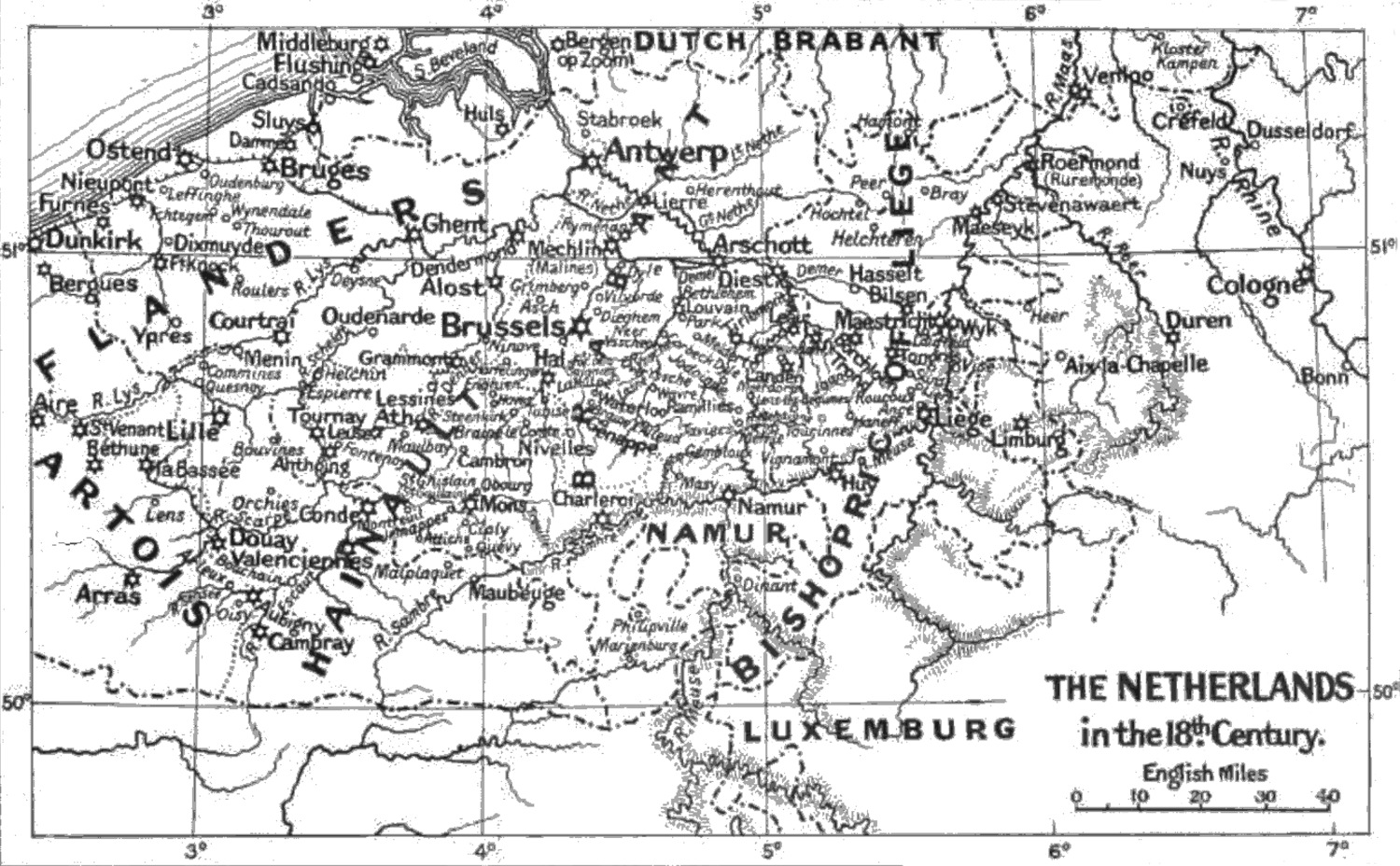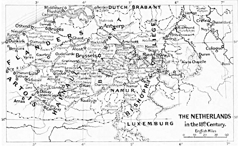 But first a short space must be devoted to the theatre of war, where England was to meet and break down the overweening power of France. Few studies are more difficult, even to the professed student, than that of the old campaigns in Flanders, and still fewer more hopeless of simplification to the ordinary reader. Nevertheless, however desperate the task, an effort [Pg 2] must be made once for all to give a broad idea of the scene of innumerable great actions.