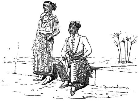 Barbosa appears to have associated chiefly with the Moors, whose character and customs he describes almost as they exist at the present day. He speaks of their heads, covered with the finest handkerchiefs; of their ear-rings, so heavy with jewels that they hang down to their shoulders; of the upper parts of their bodies exposed, but the lower portions enveloped in silks and rich cloths, secured by an embroidered girdle. He describes their language as a mixture of Arabic and Malabar, and states that numbers of their co-religionists from the Indian coast resorted constantly to Ceylon, and established themselves there as traders, attracted by the delights of the climate, and the luxury and abundance of the island, but above all by the unlimited freedom which they enjoyed under its government. The duration of life was longer in Ceylon than in any country of India. With a profusion of fruits of every kind, and of animals fit for food, grain alone was deficient; rice was largely imported from the Coromandel coast, and sugar from Bengal.