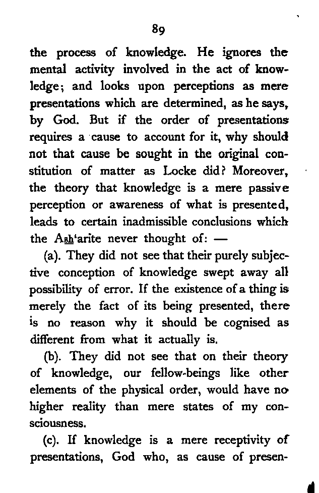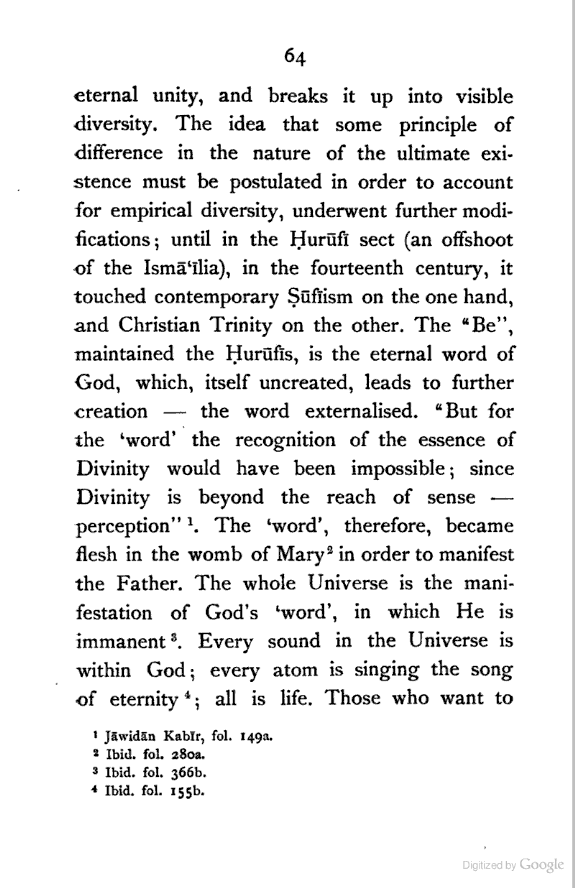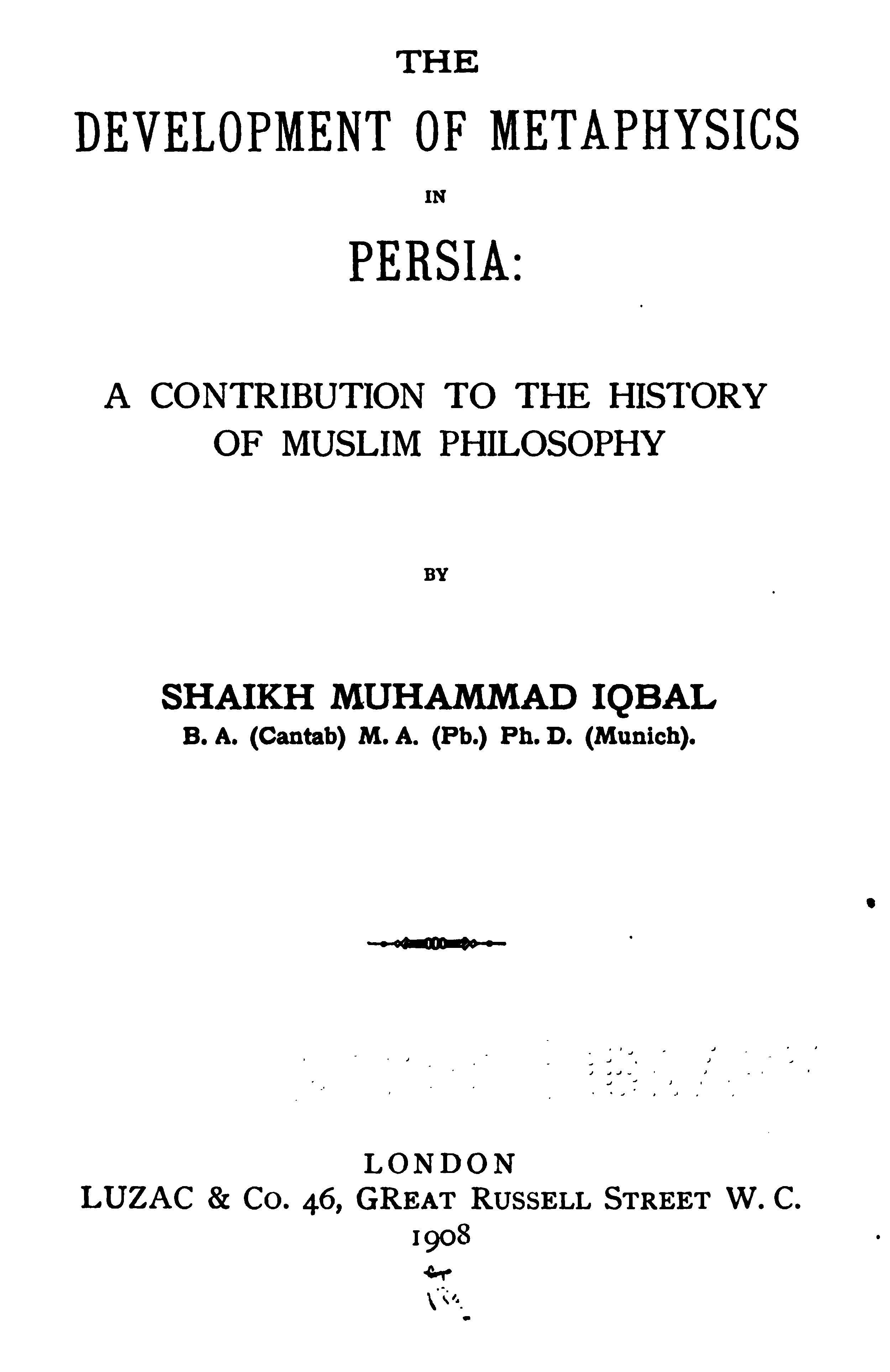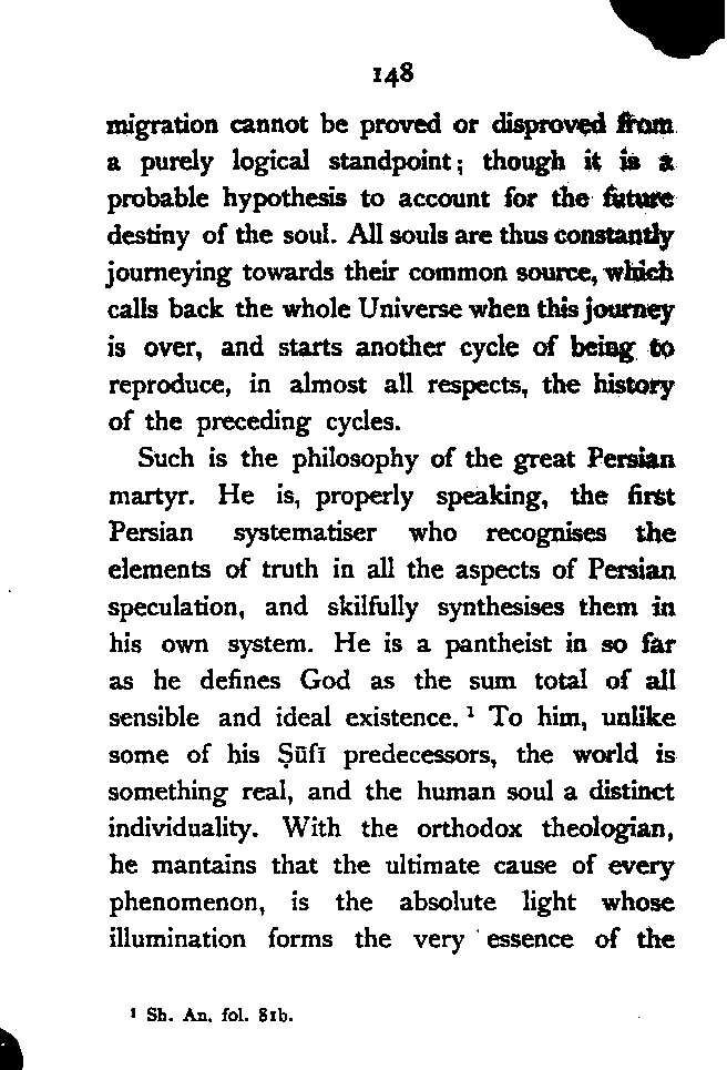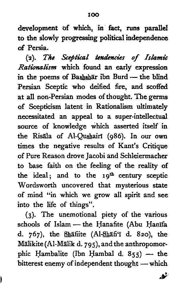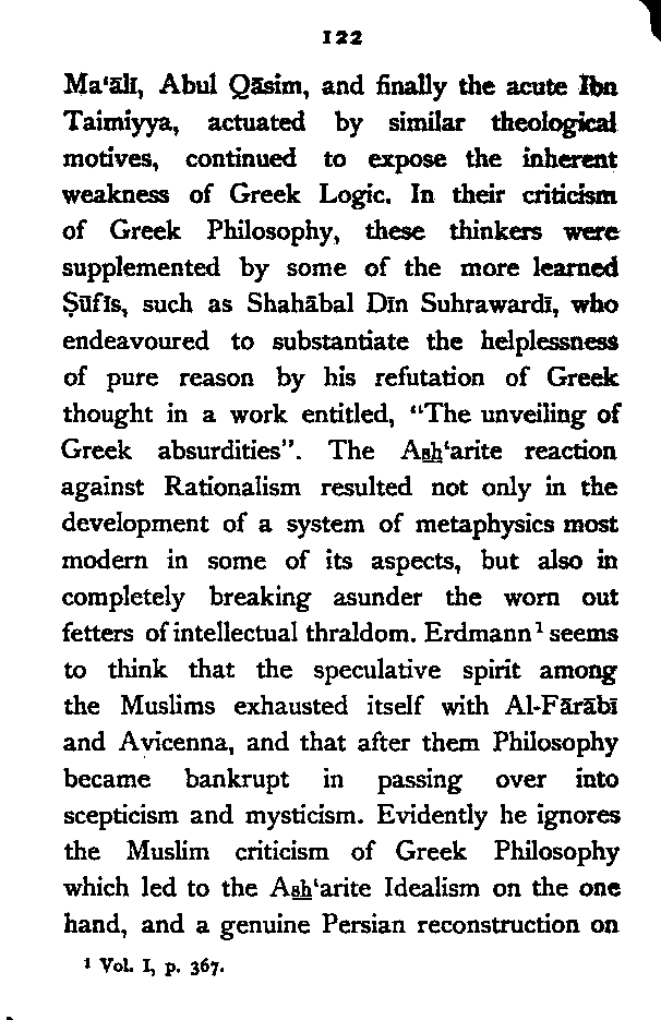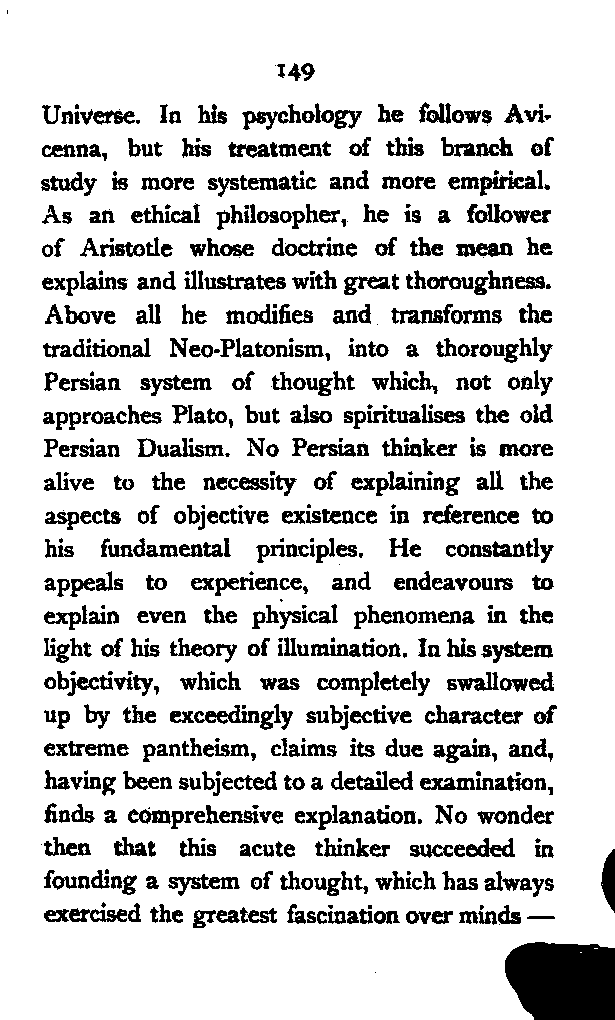 (a) I have endeavoured to trace the logical continuity of Persian thought, which I have tried to interpret in the language of modern Philosophy. This, as far as I know, has not yet been done.